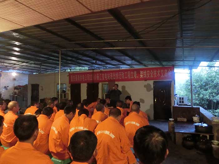 重慶綦南供電公司220KV綦江變電站進(jìn)出線遷改工程立塔、架線安全培訓(xùn)